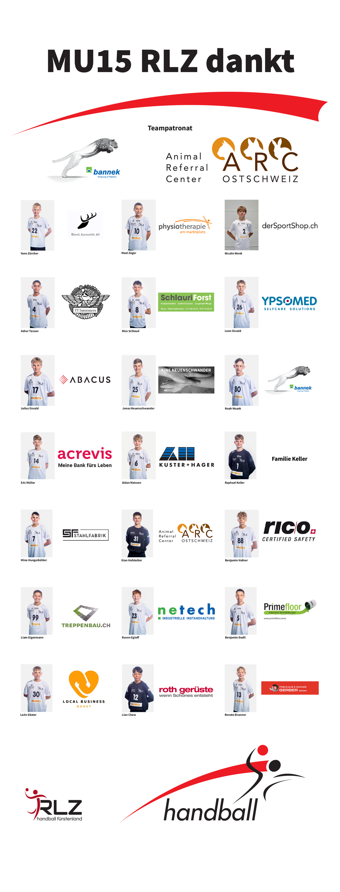 Julius Osvald, Ashur Tavsan, Nico Schlauri, Lorin Däster, Lian Chow, Gian Hofstetter, Raphael Keller, Renato Brunner, Aidan Maissen, Liam Eigenmann, Mael Züger